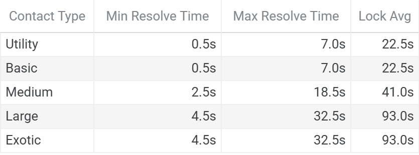Utility, Basic and Medium contacts complete acquisition well within their lifetime window under all scan conditions, with total acquisition representing less than 25% of available lifetime. Large and Exotic contacts operate under a tighter budget—worst-case total acquisition consumes at least 63% of the minimum lifetime window before expiry risk becomes a factor. That margin absorbs scan phase residual penalties, contact position variance, and large dish coordination time, which will be discussed in a future module.