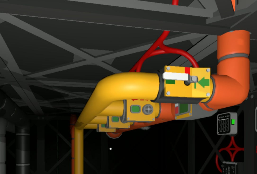 This build provides infrastructure to support three suit storages. A single controller can manage up to 6 suit storages, so this configuration leaves room for future expansion. Operators can adjust the installation based on their use case—adding or removing suit storages by replicating the gas supply and exhaust pipe connections without modifying the core architecture.