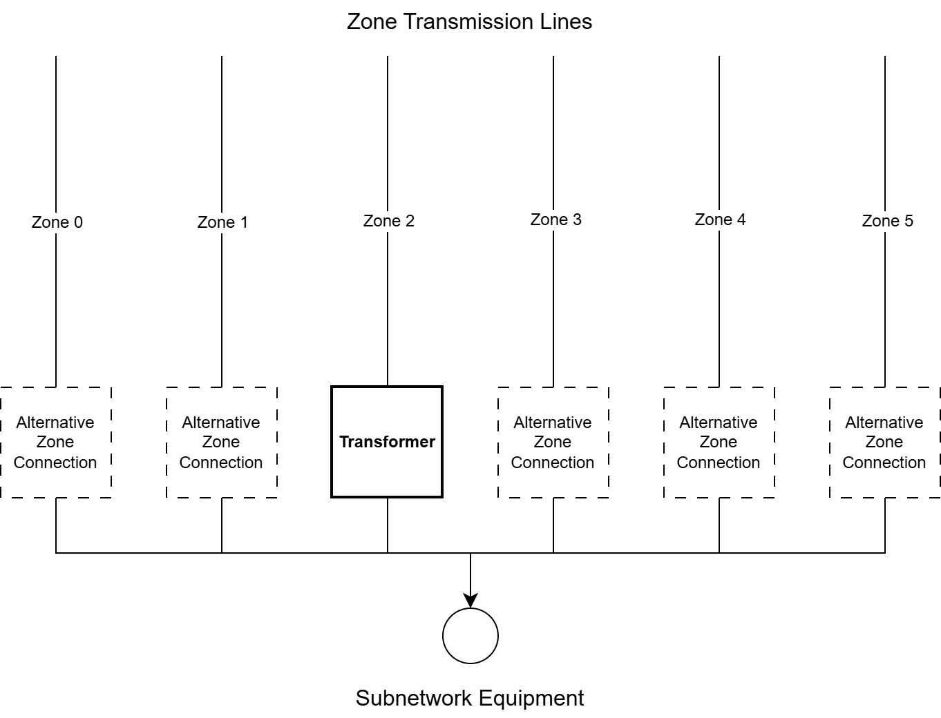 Changing a subnetwork’s zone assignment requires disconnecting the transformer from one zone cable and reconnecting to a different zone cable at the same location. The cable infrastructure remains unchanged; only the transformer’s connection point changes.