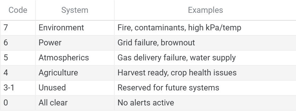 Category — Type of system being monitored (Environment, Power, Atmospherics, Agriculture), encoded 1-7, maps 1:1 with cable channels