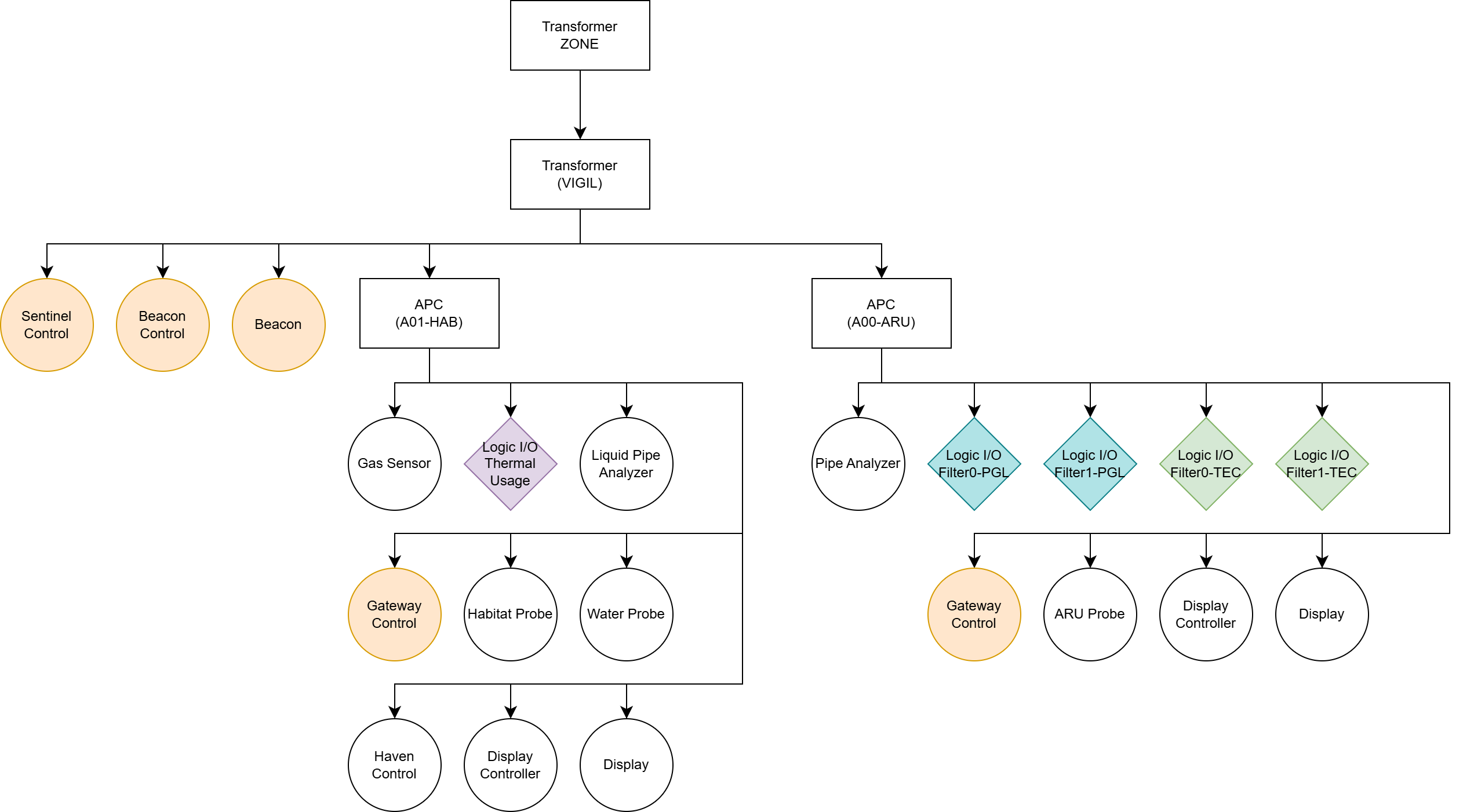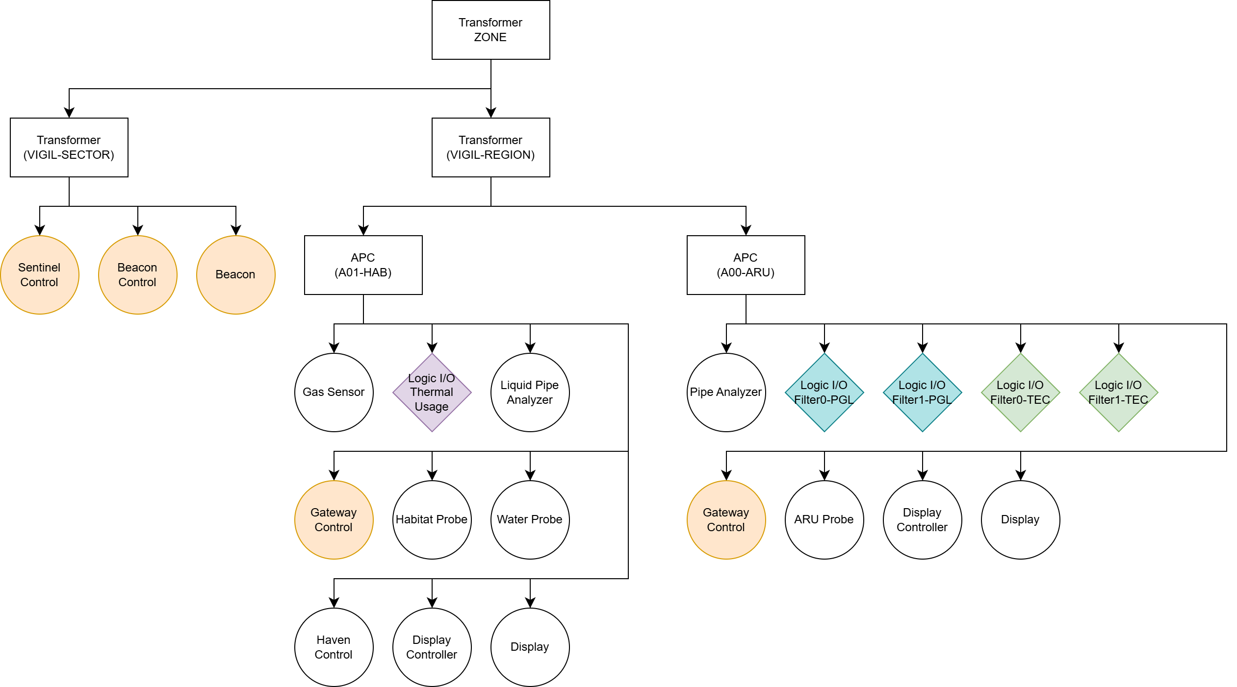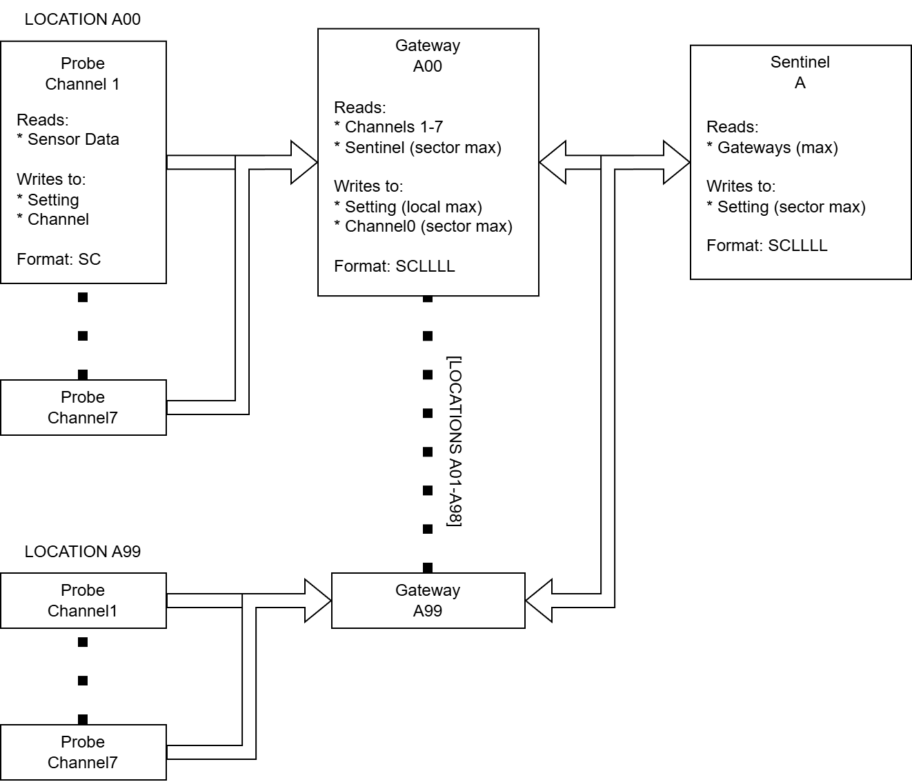 Sector-level (Vigil transformer): Sentinel, Beacon Controller, Beacon, and Gateway data ports share this network. Only the Sentinel performs batch operations at this tier.